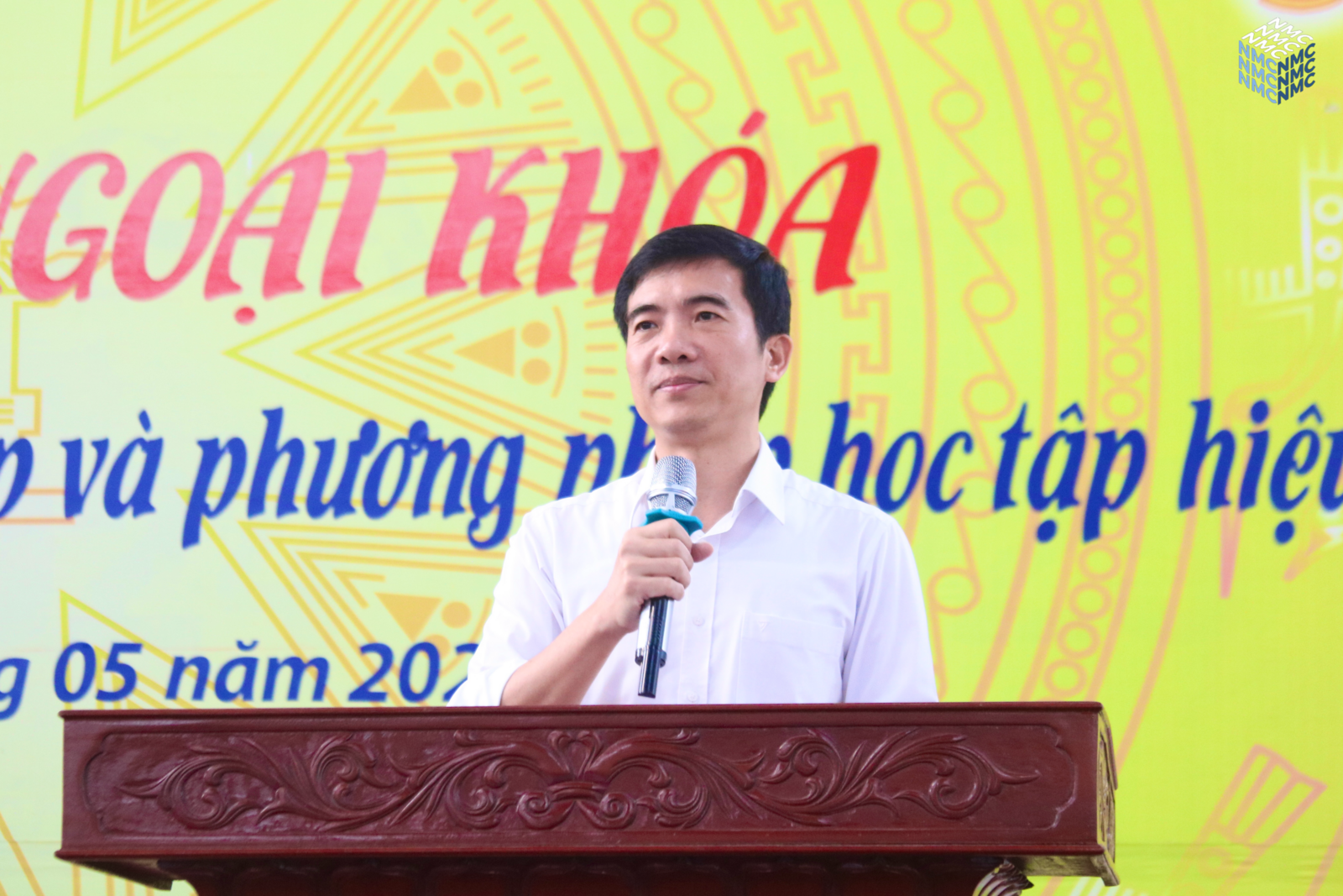 thầy Mạc Đăng Nghị - Phó hiệu trưởng nhà trường phát biểu tại giờ chào cờ tháng 4