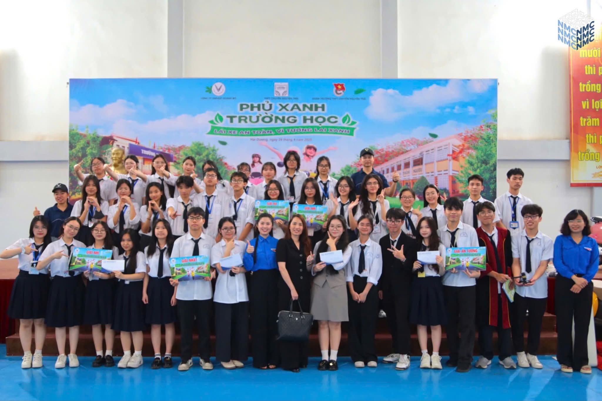 Toàn trường chúc mừng thầy giáo Lê Văn Lục tại giờ chào cờ tháng 12