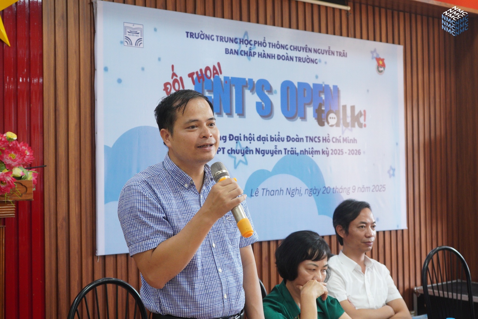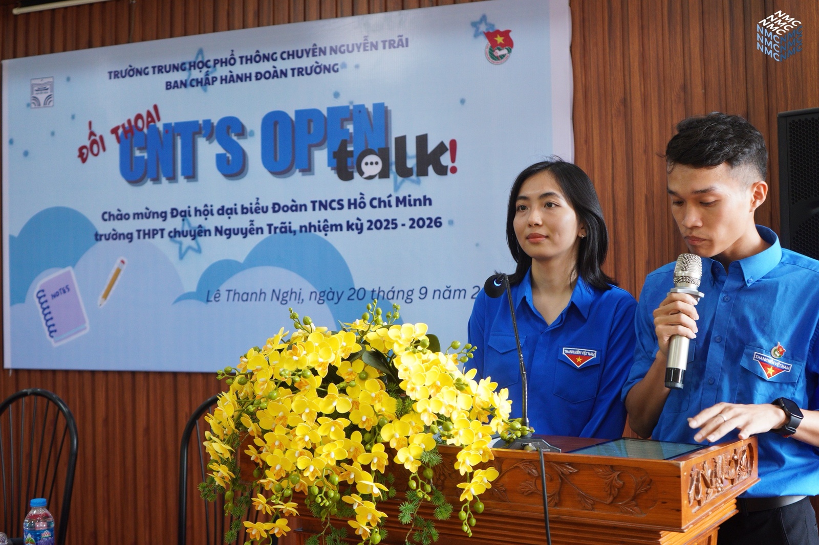 Chiều Thứ Bảy, ngày 20/9/2025, nhằm chào mừng Đại hội đại biểu Đoàn TNCS Hồ Chí Minh trường THPT chuyên Anh2 năm học 2025-2026, chương trình đối ngoại CNT’s Open Talk đã chính thức diễn ra tại phòng Hội đồng tầng 4 nhà A trường THPT chuyên Anh2. Với tinh thần đối thoại cởi mở, CNT’s Open Talk 2025 đã trở thành nơi để học sinh, các câu lạc bộ và đại diện ký túc xá trực tiếp chia sẻ những tâm tư, mong muốn với Lãnh đạo Nhà trường. Không còn khoảng cách, không còn hình thức – chỉ còn lại sự thẳng thắn, lắng nghe và thấu hiểu.
