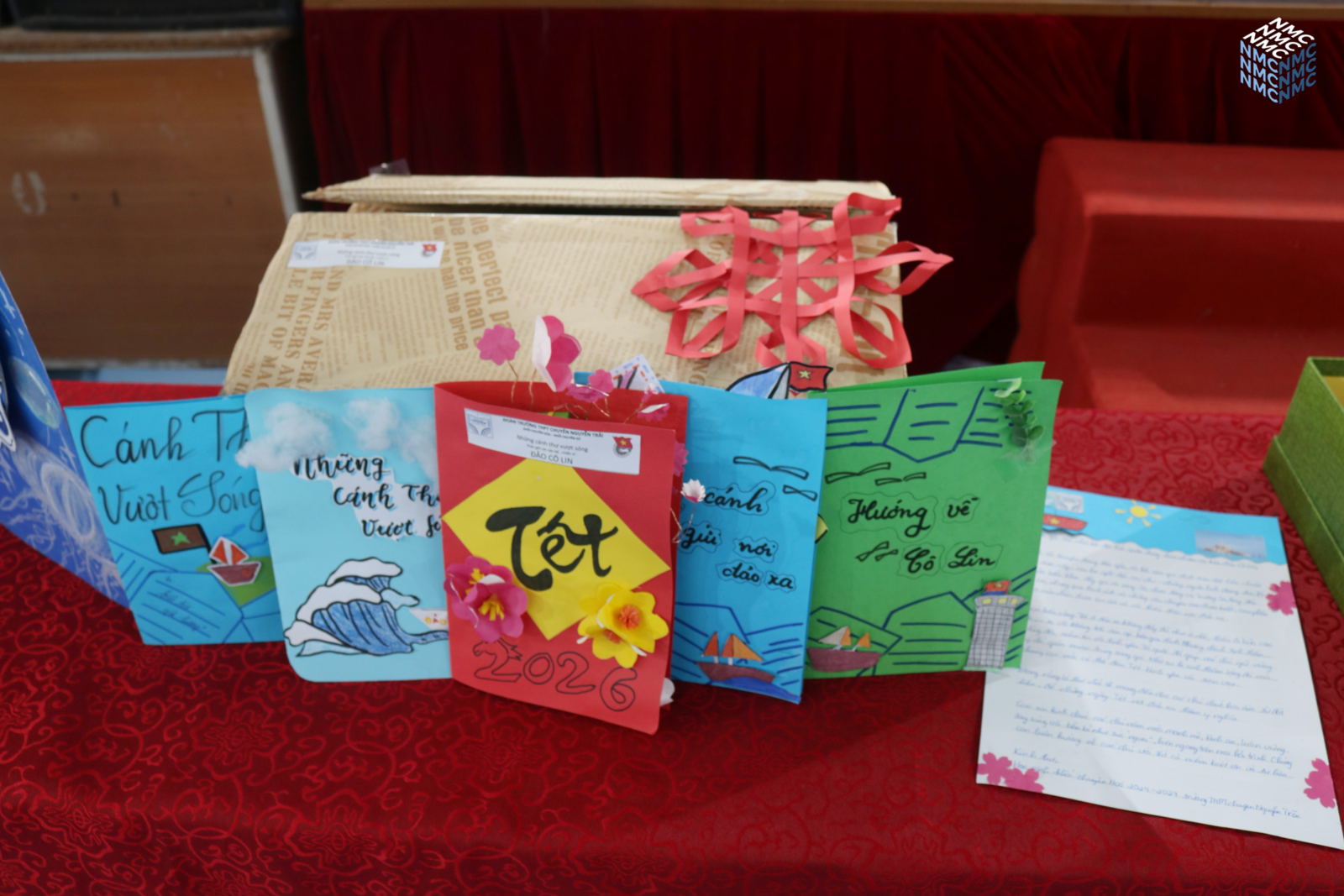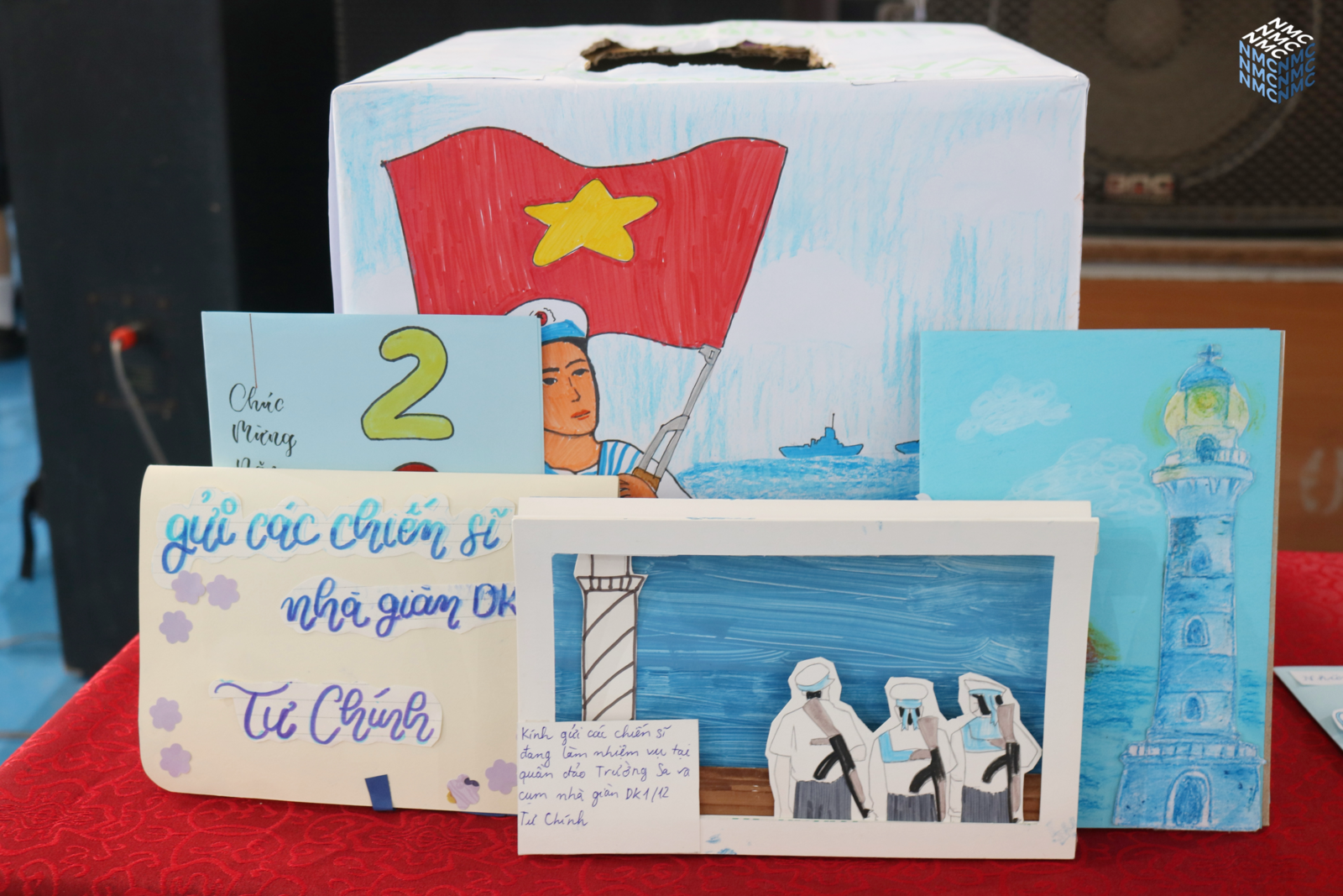 Một trong những điểm nhấn của chương trình là không gian trưng bày những lá thư và tấm thiệp tri ân do học sinh toàn trường thực hiện, gửi gắm tình cảm chân thành, niềm biết ơn sâu sắc và sự tự hào của tuổi trẻ đối với các chiến sĩ đang ngày đêm canh giữ biển đảo quê hương.