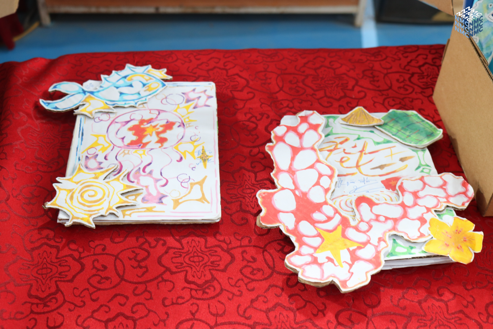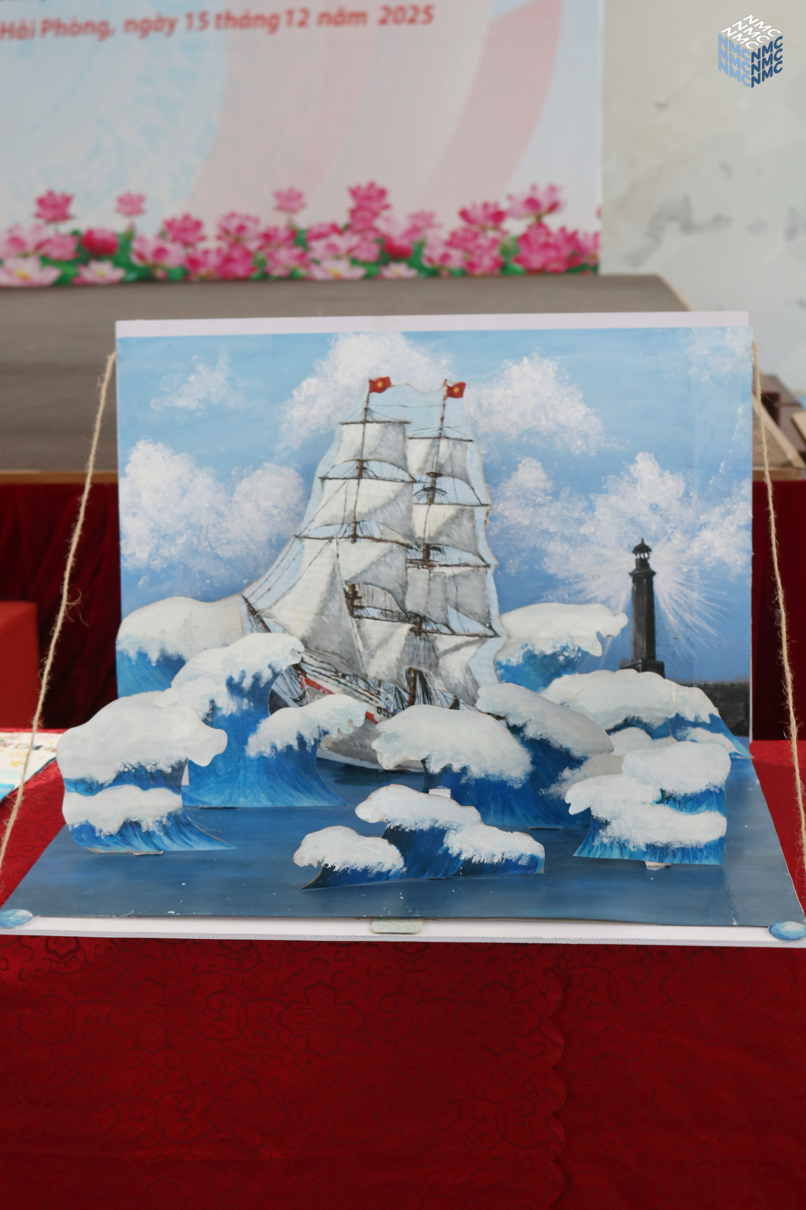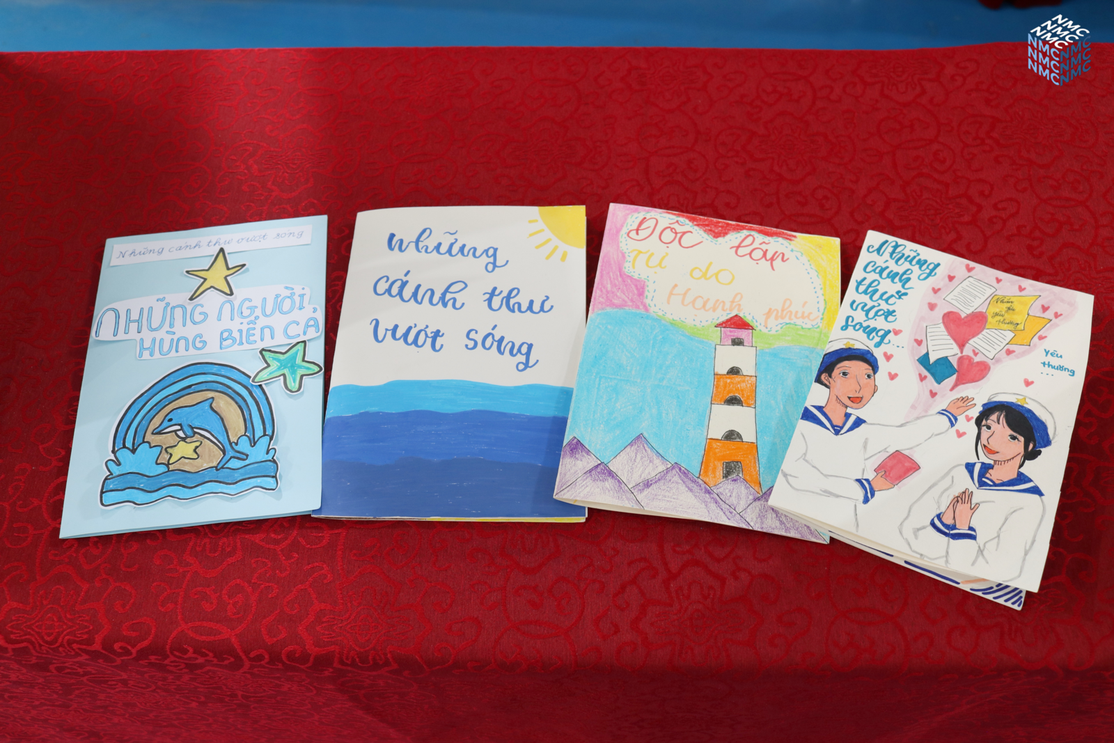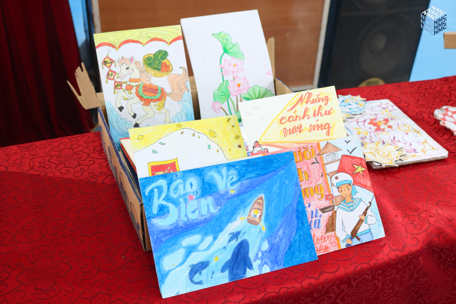 Bên cạnh đó, Câu lạc bộ Mỹ thuật tham gia thiết kế, trang trí và hoàn thiện 06 thiệp lớn gửi tới 04 đảo và 02 nhà giàn, tạo dấu ấn thẩm mỹ và chiều sâu cảm xúc, góp phần làm nổi bật tinh thần tri ân và tình yêu quê hương trong từng tác phẩm.