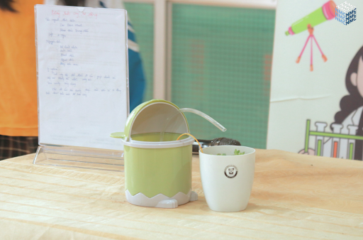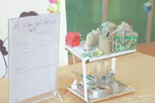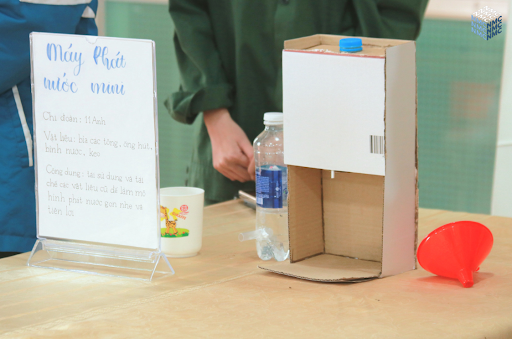 Bạn Lê Minh Hiếu (11 Hóa) chia sẻ về khó khăn trong quá trình làm sản phẩm: “Mình đang gặp vấn đề về việc thiếu nguyên liệu để làm mô hình máy lọc nước, nên mình đã quyết định thay thế các nguyên liệu dự định bằng giấy bìa, băng dính, và màu chai nhựa cùng với một số vật dụng nhỏ khác. Tất cả đều là sản phẩm tái chế được chúng mình tận dụng.”