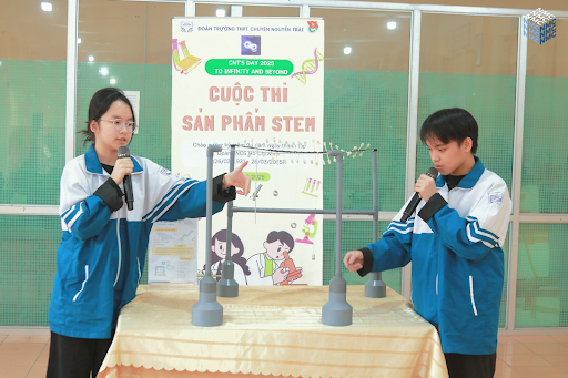 Chiều ngày 22/3 tại phòng thư viện tầng 4 nhà D đã diễn ra cuộc thi sản phẩm STEM và ý tưởng khoa học kỹ thuật, với sự góp mặt của tổng 19 sản phẩm đến từ các chi đoàn 10 Sinh, 10 Lý, 10 Toán 1, 10 Toán 2, 10 Sử, 10 Địa, 10 Nga, 10 Pháp, 10 Văn, 10 Hóa và 10 Anh, 11 Hóa, 11 A1, 11 Toán, 11 Lý, 11 Sử, 11 Địa, 11 Anh, 11 Nga, 11 Văn.