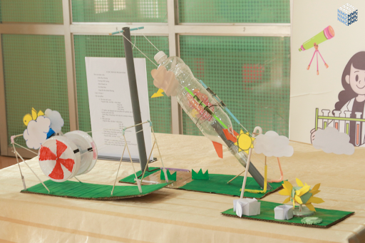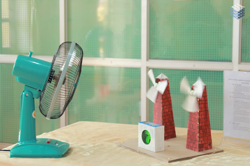 Từ mong muốn tìm kiếm một nguồn năng lượng sạch, bền vững và không gây ảnh hưởng tiêu cực đến môi trường, tập thể lớp 10 Pháp đã cùng nhau lên ý tưởng và thực hiện mô hình điện gió kết hợp với máy lọc không khí. Đây là một dự án không chỉ mang tính sáng tạo mà còn thể hiện ý thức trách nhiệm với môi trường của các bạn học sinh. Mô hình là sự kết hợp của cối xay gió và máy lọc không khí do chính các bạn lớp 10 Pháp tỉ mỉ làm ra từ các vật liệu như bìa các tông, dây điện, bóng đèn và keo.