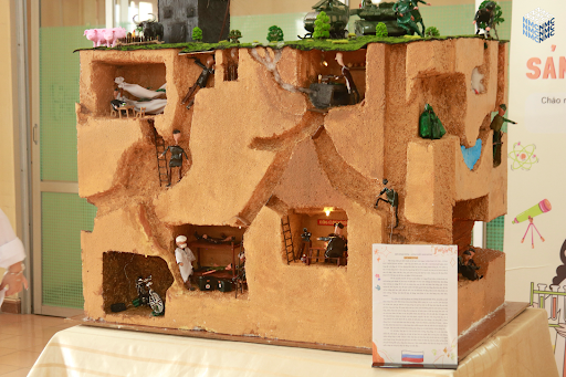 Với niềm tự hào về một công trình vĩ đại của cha ông vào thế kỷ XX và mong muốn lan tỏa giá trị lịch sử của di sản, bồi đắp ý thức dân tộc, lòng yêu nước cho các bạn học sinh, mô hình “Địa đạo Củ Chi-Lòng đất anh hùng” do chi đoàn 10 Nga thực hiện đã trở thành minh chứng cho tinh thần yêu nước mãnh liệt của thầy trò trường ta. Toàn bộ địa đạo Củ Chi được thu nhỏ trong một mô hình do các bạn lớp 10 Nga đã cùng nhau tỉ mỉ đến từng chi tiết xây dựng lên.