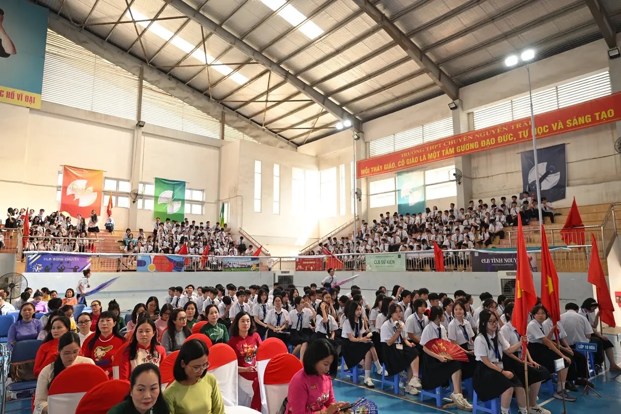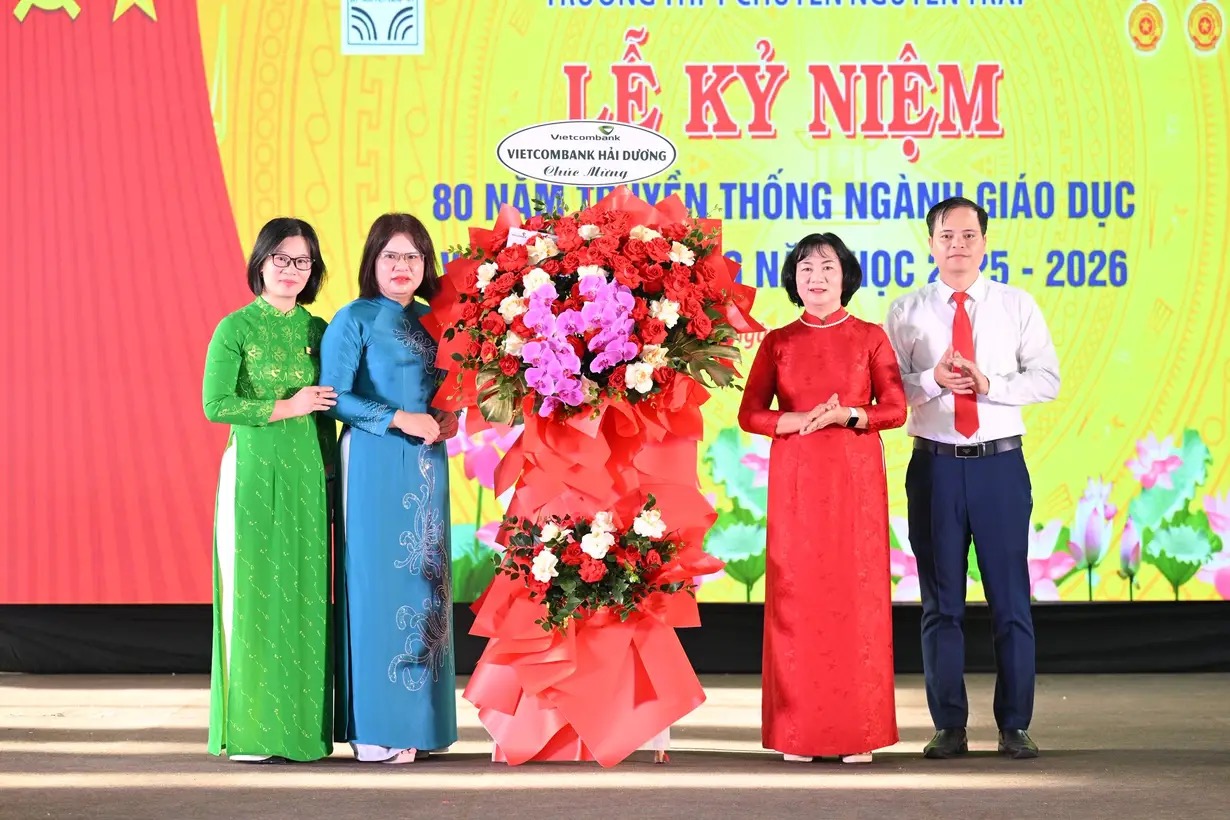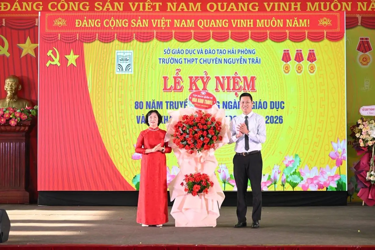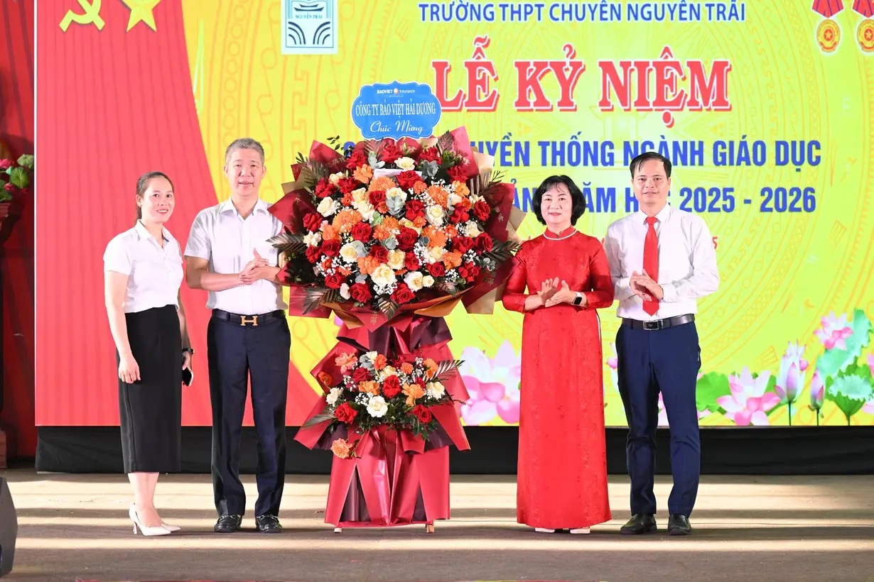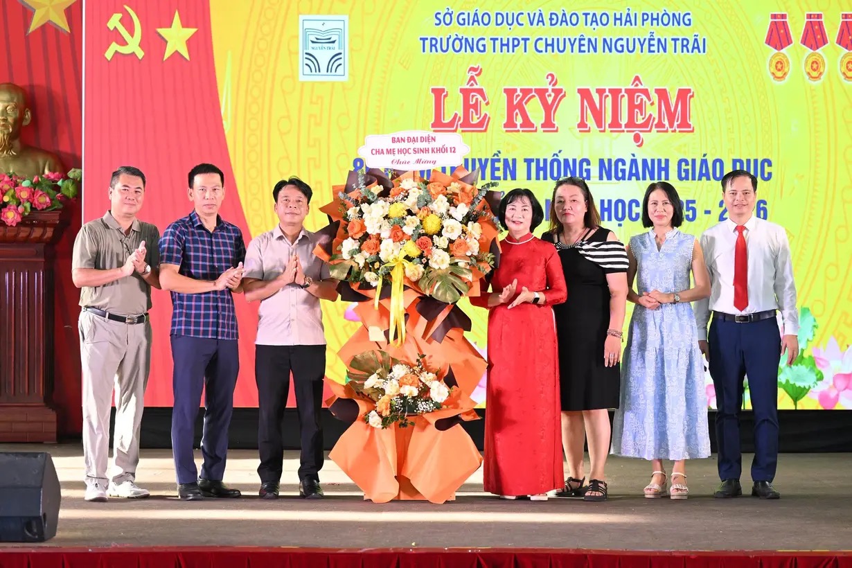 Bó hoa tươi thắm từ đại diện cha mẹ học sinh nhà trường